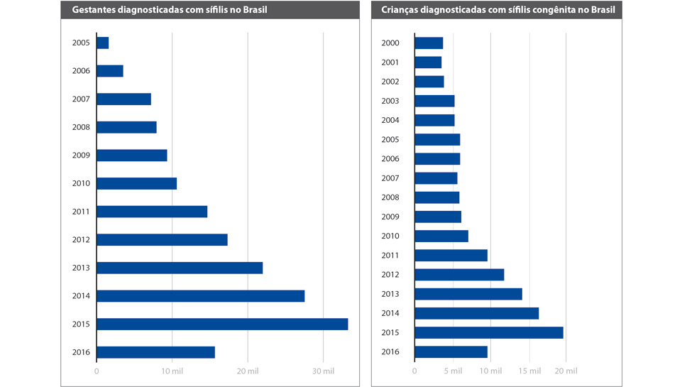 Os casos de crianças que já nascem com a doença, a sífilis congênita, também aumentaram. Em 2000, foram 3.674 registrados; em 2015, o número subiu para 19.235. A infecção ocorre durante a gestação ou pela amamentação. O professor e obstetra Jorge Rezende Filho, da Escola Médica da PUC-Rio, observa que qualquer infecção na gravidez é um risco, e as consequências são das mais distintas.