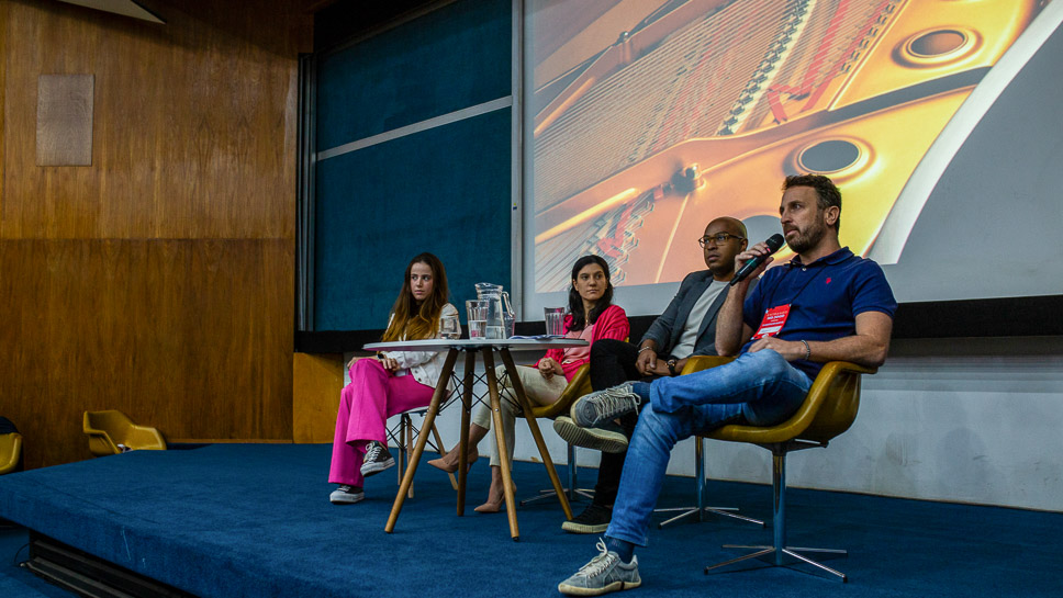 Coordenadora de ESG nas Organizações Globo, Bárbara Ferrão explicou como funciona o processo de implementação das práticas dentro da empresa, as atividades que coordena e como todos os funcionários da empresa devem estar engajados. Segundo ela, em um relatório de 2022 foi estabelecida uma agenda em que a empresa se compromete com seis compromissos
