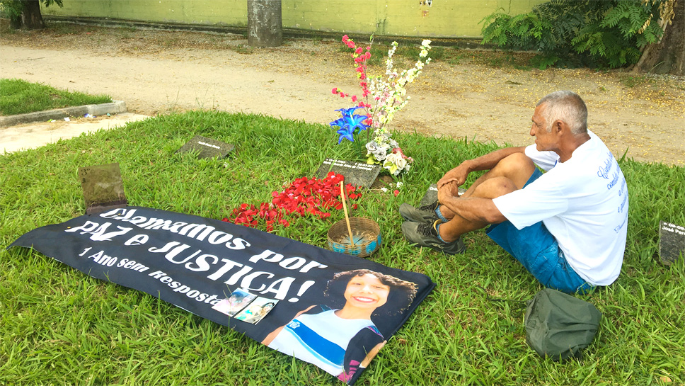 Uma das vítimas entre as 1.124 pessoas mortas pela Polícia Militar (PM) do Rio de Janeiro em 2017 foi a estudante Maria Eduarda Alves da Conceição, de 13 anos, baleada dentro da Escola Municipal Daniel Piza em Acari, na Zona Norte do Rio, por disparos de um cabo. No último dia 30, um ano exato da morte da menina, a ONG Rio de Paz a homenageou e mais outras 47 crianças mortas na cidade nos últimos 11 anos. Presente na manifestação, o pai do menino Benjamin da Silva, de um ano e 7 meses, morto no Complexo do Alemão no mês passado, Fábio Antônio da Silva acredita que usar a violência como resposta contra a violência não trará a paz.