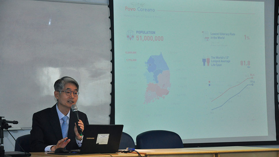 O embaixador da Coreia do Sul, Kim Chan-Woo, visitou a Universidade no dia 2 e ministrou a palestra 60 anos das relações entre Brasil e Coreia do Sul. Durante a conversa, organizada pela Coordenação Central de Cooperação Internacional (CCCI), o embaixador explicou que um dos motivos da visita foi para celebrar os anos de amizade e relações diplomáticas oficiais entre os dois países.