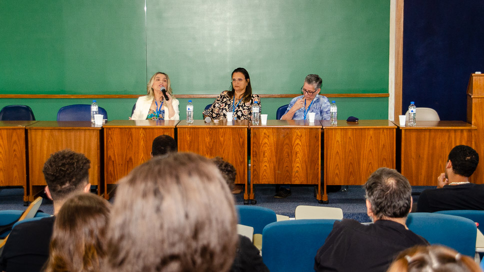 Durante o último dia de palestras, professores do Departamento de Direito discutiram abordagens dialogais para a gestão de divergências. Gilberto Martins de Almeida e Samantha Pelajo, junto à mediadora Fernanda Pradal, ressaltaram a necessidade de negociação para a garantia dos direitos individuais.