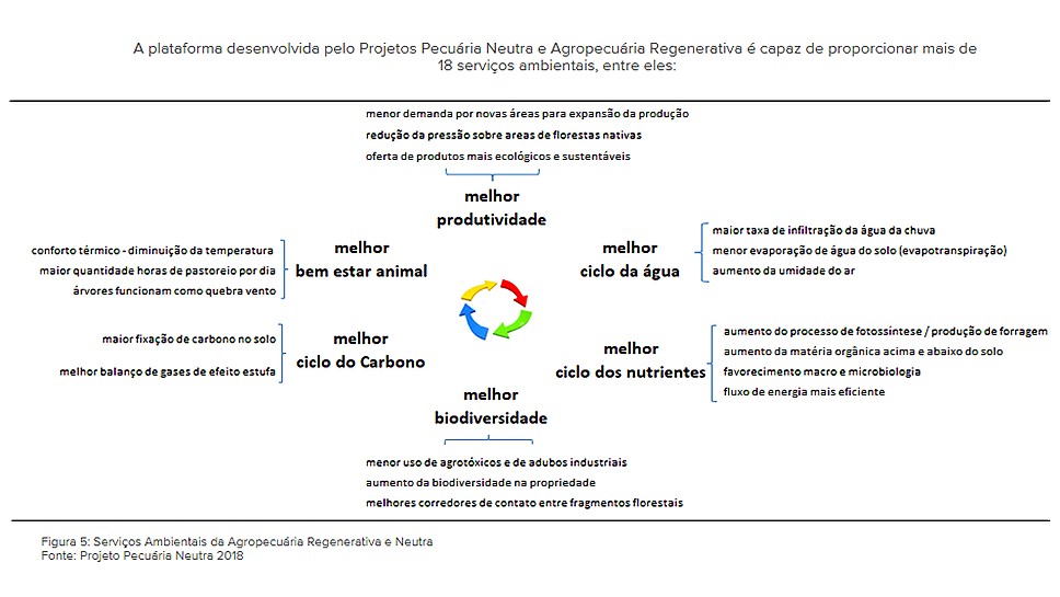 O pesquisador explica que a pecuária regenerativa e a pecuária neutra são complementares. Segundo ele, na pecuária tradicional se faz um uso extrativo da matéria orgânica residual do desmatamento e, por isso, a produtividade decai em poucas décadas, situação comum, por exemplo, na Região Sudeste do país. Na regenerativa, o boi é utilizado como um manejo que revitaliza a área e traz diversos benefícios ambientais. A pecuária neutra é alcançada quando a taxa do carbono se iguala à emissão de gás de efeito estufa. Isto ocorre com a curva de crescimento do carbono, advinda do aumento da matéria orgânica na região.