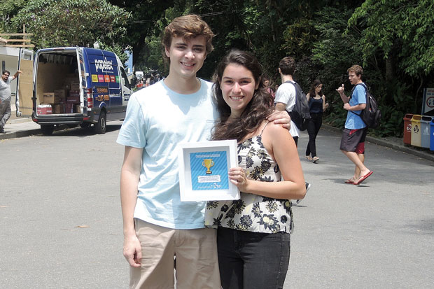 Dois estudantes da PUC- -Rio fazem parte da equipe vencedora do Hackathon Globo 2015. Destinado a desenvolvedores de software e a engenheiros que querem inovar no mundo da tecnologia, a competição foi realizada nos dias 5 e 6 de setembro. Guilherme Berger, de 21 anos, aluno do 8º período de Engenharia de Computação, e Danielle Cohen, de 20 anos, que cursa o 6º período Engenharia de Produção, participaram no desenvolvimento do HoloGlobo, capaz de capturar e reproduzir imagens em 3D, em que utilizaram capas de CD e o Google Cardboard. Com a vitória, eles ganharam uma visita de três dias, no fim do ano, ao MIT Media Lab, do Instituto de Tecnologia de Massachusetts, em Boston.