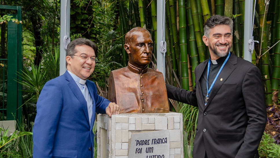 A inauguração do busto de Padre Leonel Franca, homenageado no nome da fundação, contou com a presença do Grão-Chanceler da PUC-Rio, Cardeal-Arcebispo do Rio de Janeiro, Orani João Tempesta, e do Reitor da instituição, Padre Anderson Antonio Pedroso, S.J., que reforçou o papel do jesuíta no desenvolvimento inicial da Universidade, há 83 anos.