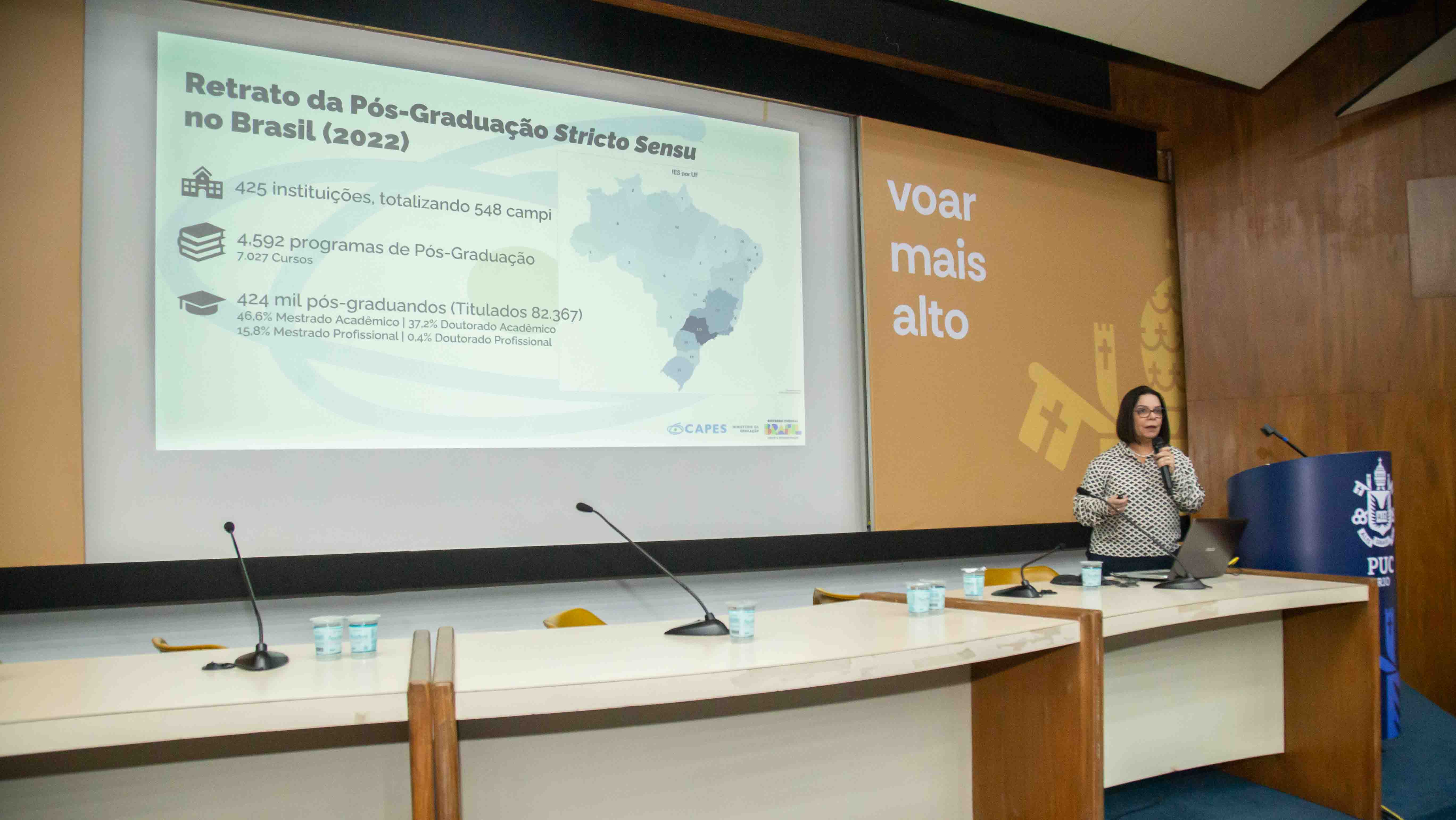 – A PUC-Rio é um exemplo de instituição nacional que tem cursos da mais alta excelência, muitos com as notas mais altas da CAPES. Então, inicialmente, eu parabenizo a toda a comunidade da PUC-Rio por isso. O que nós pretendemos é que haja ainda mais cursos de excelência no país. Para isso a comunidade da PUC é fundamental, abrindo novos cursos em áreas novas e estratégicas, e mantendo a qualidade característica desta Universidade – pontuou Denise.