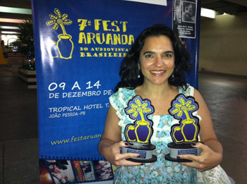 Marcia Antabi, chefe de pós-produção da TV PUC, esteve na cerimônia para receber os prêmios em nome de toda a equipe, que tem 31 estagiários.