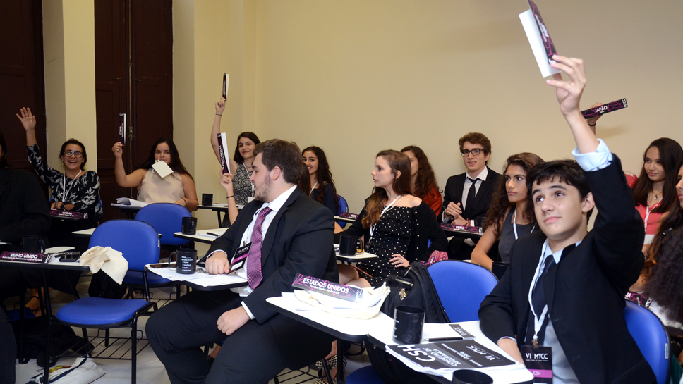 Delegados reunidos em uma sala discutem a questão da islamofobia mundial. O representante do Sudão levanta a placa de identificação para falar pelo país. Quase dois minutos depois, ouve-se uma martelada da mesa da diretoria. O som é um aviso prévio de que o delegado tem apenas mais dez segundos para completar o pronunciamento. Essa situação, que poderia ser em um encontro da Organização das Nações Unidas (ONU), ocorreu no Modelo Interno do Colégio Cruzeiro (MICC), entre os dias 28 e 31 de março.