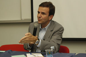 O presidente da Associação dos Antigos Alunos da PUC-Rio (AaA), Thomás Tosta de Sá, começou elogiando a iniciativa de realizar o encontro com os candidatos, já que, para ele, essa é a melhor forma de decidir o voto. Já Eduardo Shalders, presidente do Diretório Central dos Estudantes (DCE) da PUC-Rio, se entusiasmou ao ver o grande número de jovens interessados em política. Para Eduardo, são os jovens que definem o futuro do país, e por isso pediu ao candidato, caso seja eleito, atenção à educação, “base para a evolução da sociedade”, afirmou Eduardo.