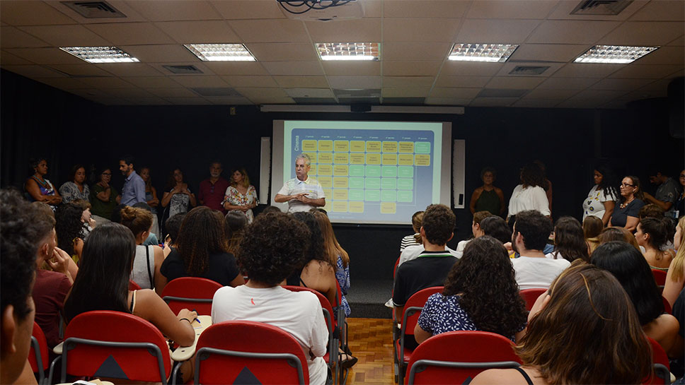 Palestra de recepção de calouros de Comunicação Social. Foto: Amanda Dutra.