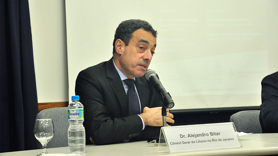 A relação entre o Oriente e o Ocidente, no âmbito do pluralismo entre as diferentes religiões, foi o tema central da palestra do cônsul Geral do Líbano na capital fluminense, Alejandro Bitar, que ocorreu na Universidade no dia 27 de maio. A iniciativa é fruto do projeto Rio-Beirute: Caminhos para as duas cidades, que foi lançado em abril deste ano. A proposta visa facilitar o contato entre Brasil e Líbano, e promover um intercâmbio cultural recíproco a longo prazo.