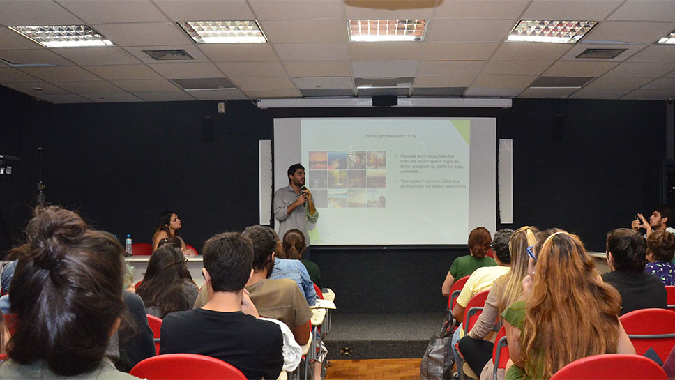 A palestra sobre Instagram Marketing encerrou o ciclo de palestras sobre Mídias Digitais na segunda-feira, 17. Ex-aluno de Jornalismo na PUC-rio e mestre em Mídias Criativas pela UFRJ, Júlio Trindade expôs as transformações provocadas pelo Instagram na comunicação. Trindade baseou o raciocínio de acordo com Lev Manovich, pesquisador na área de novas mídias, mídias digitais, design e estudos do software. O pesquisador é conhecido por dizer que a sociedade vive um Instagramismo, baseada na estética, que proporciona a cultura da imagem e causa uma mudança da relação do público com as mídias.