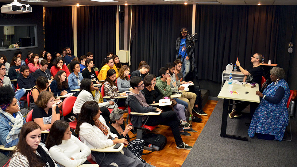A discussão entre personagens, a representação negra e a estereotipação literária foram alguns dos temas debatidos no bate-papo com a escritora Conceição Evaristo no dia 5 de junho, mediado pelo professor Sergio Mota, do Departamento de Comunicação Social. A autora será homenageada como Personalidade Literária do Ano na próxima edição do Prêmio Jabuti, em novembro.