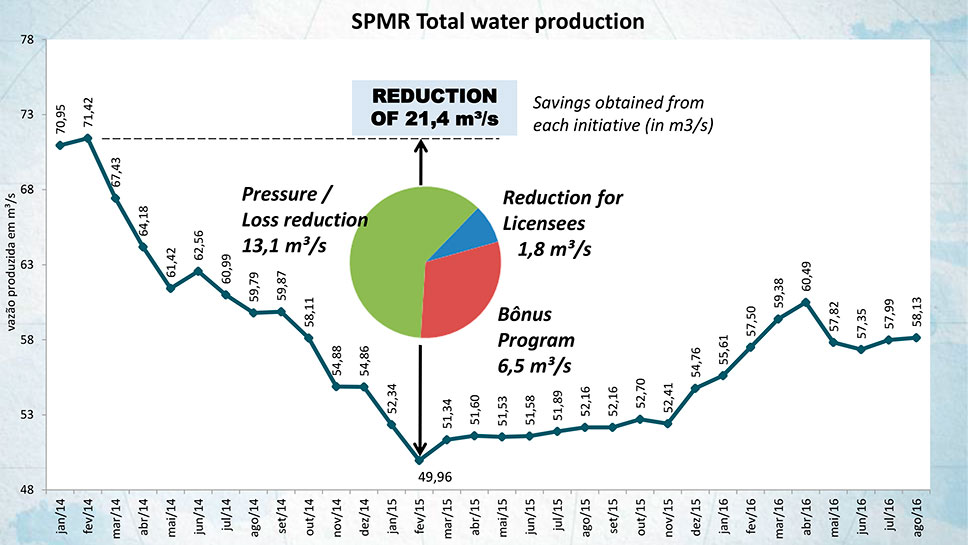 Outra iniciativa citada pelo professor da COPPE foi a integração do sistema de distribuição - os prédios passaram a receber água de mais de uma fonte, o que diminuiu o desperdício. Kelman contou que novas estações de tratamento foram construídas onde ainda havia água, um total de 34 obras. Em fevereiro de 2014, foram registrados gastos hídricos de 71,42 de metros cúbicos por segundo (71,42 m³/s) em São Paulo e, um ano depois, esse número passou para 21,426 m³/s, o que significa redução de 30%.