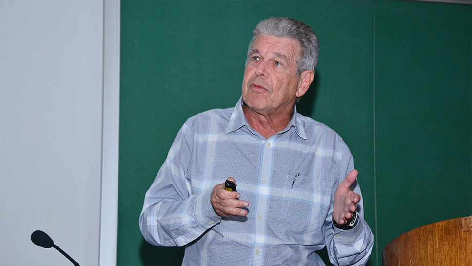 O professor Jerson Kelman, do Instituto Alberto Luiz Coimbra de Pós-Graduação e Pesquisa de Engenharia (COPPE), da Universidade Federal do Rio de Janeiro (UFRJ), esteve no campus no dia 9 de julho para falar sobre os desafios da gestão dos recursos hídricos no Brasil. Kelman também é ex-presidente da Companhia de Saneamento Básico do Estado de São Paulo (Sabesp). A jornada do professor em São Paulo começou durante a seca de 2015, e a posição assumida dentro da empresa foi para controlar a crise de água no território paulista.