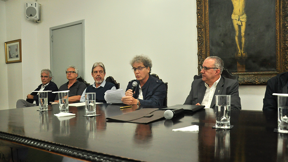 Ex-diretor do Departamento, professor Ricardo Ismael iniciou a cerimônia com agradecimentos pelo período em que atuou no cargo. Segundo ele, o mais importante nos últimos anos foi o aprendizado que ganhou da Universidade. Padre Josafá destacou a relevância do trabalho realizado pelo professor e, entre os pontos positivos, citou a sensibilidade com que a imagem da PUC foi transmitida para a mídia.