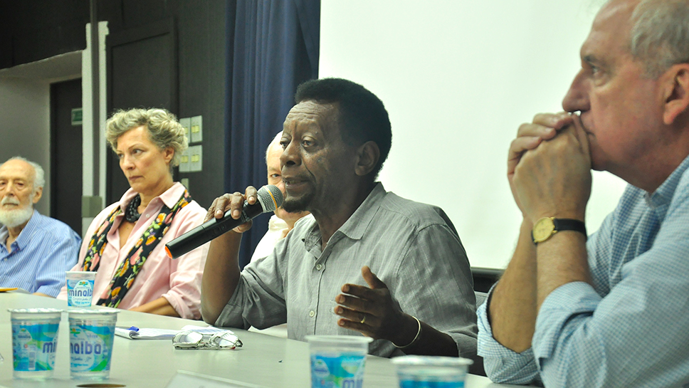 A discrição, o olhar respeitoso para a cultura africana e a trajetória profissional são alguns dos traços de um dos maiores historiadores brasileiros e que foram registrados no documentário Alberto da Costa e Silva, filho da África, exibido em um encontro realizado na Universidade no dia 6 de novembro. Após a sessão, houve uma mesa redonda com a presença de Costa e Silva, dos diretores do filme Stéphanie Malherbe e Ricardo Vilas, do literato Éle Semog, da professora Sônia Giacomoni do Departamento de Ciências Sociais, e do jornalista Franklin Martins.