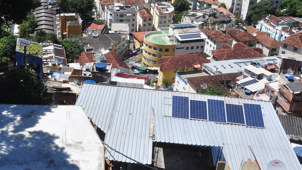 Fundada por um ex-aluno da PUC-Rio, Henrique Drumond, e pelo economista Michel Baitelli, a Insolar é um negócio social que visa democratizar o acesso à energia solar no Brasil, com a instalação de painéis solares em comunidades de baixa renda. O projeto aprovou 15 comunidades no Rio de Janeiro para colocar os painéis – 200 já foram instalados. Moradora da comunidade Santa Marta, em Botafogo, Kelly Guedes comenta que as instalações beneficiaram diversas gerações da comunidade porque elas ampliaram a rede elétrica no morro.