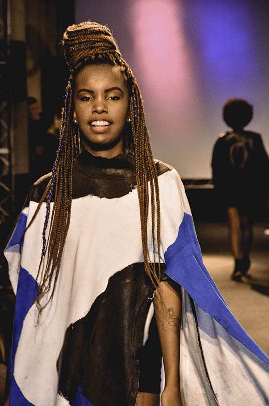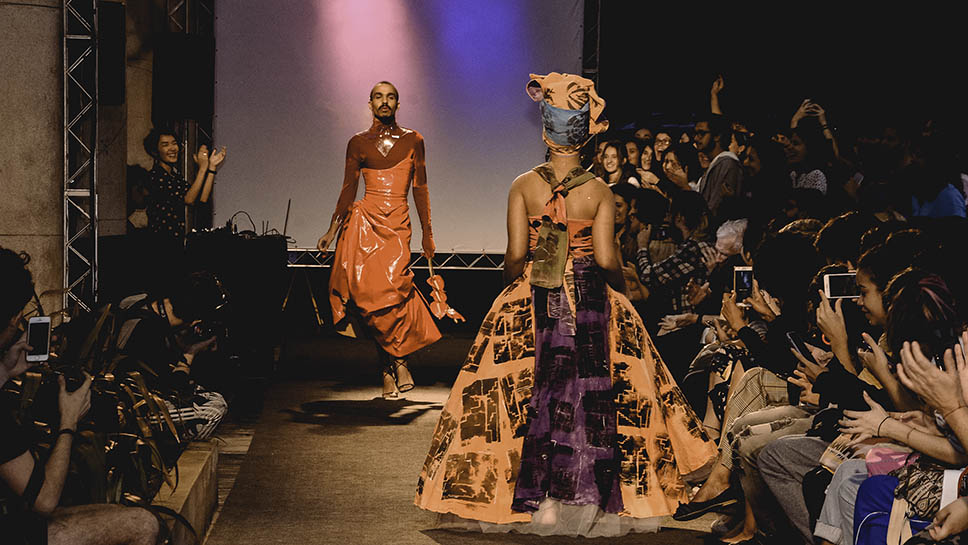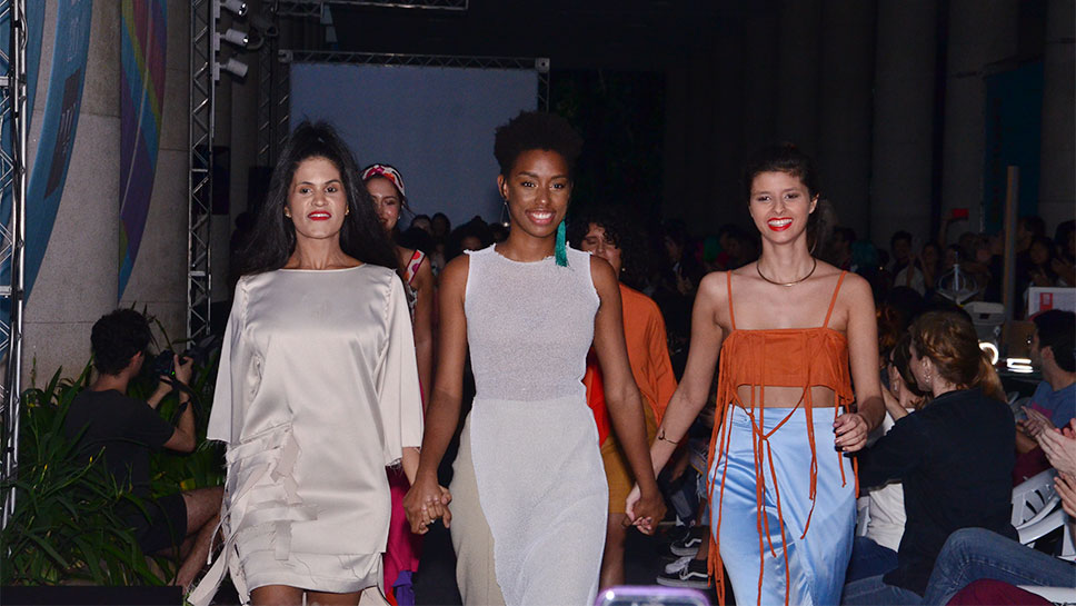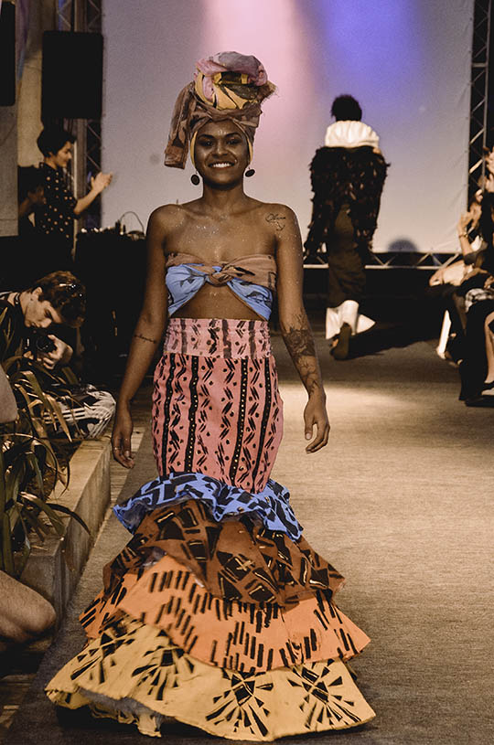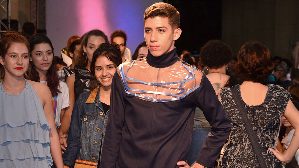 A coleção de Maria Vitória Flores dos Santos também era próxima da realidade da estudante. Moradora da Rocinha, ela se inspirou no elemento do improviso para criar os modelos mostrados no desfile. Com o título Gambiarras, Maria disse que quis investigar a prática como um elemento da cultura brasileira e de criação de possibilidades, e não como algo degradante.
