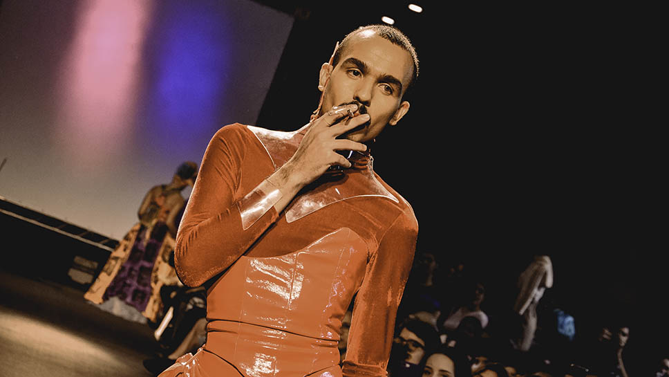 Marconi, que é modelo na Mahi Models Agency, desfilou pela terceira vez na Semana de Design. Ele contou que este foi o primeiro ano em que esteve envolvido no processo, e que a roupa foi pensada para o corpo dele. O modelo ainda disse que a colaboração de todas as pessoas envolvidas no projeto foi essencial para o resultado final e ressaltou a quebra de estereótipos proposta por Cacau.