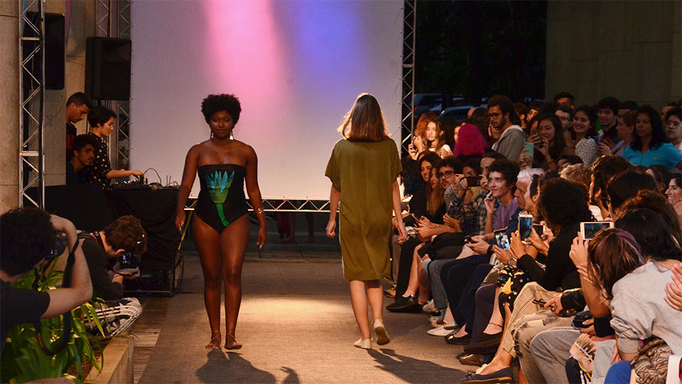 Assim como ocorre desde a realização do primeiro desfile, o espaço do Edifício da Amizade estava cheio para a apresentação. Gabriela Szpilman, que cursa Design de Produto, disse que não perde uma edição desde que entrou na Universidade. A estudante, que cursou a disciplina Projeto 6 neste período, estava com um trabalho de Projeto 3 na exposição montada nos pilotis. Ela comentou que a Semana de Design é um momento importante para os estudantes mostrarem a sua produção.