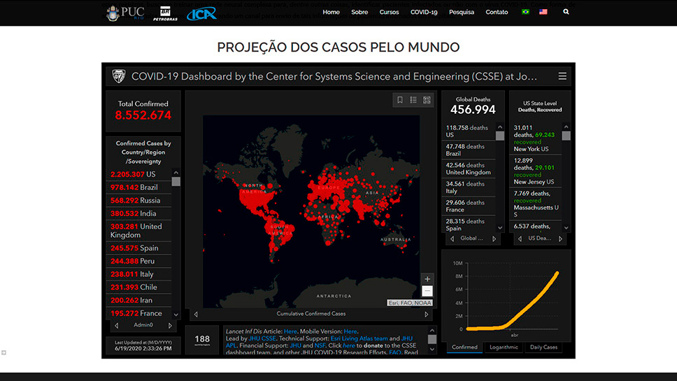 Pesquisadores do Laboratório de Inteligência Computacional Aplicada (ICA) da PUC-Rio, em parceria com o Centro de Pesquisas Leopoldo Américo Miguez de Mello (Cenpes/Petrobras), têm prestado auxílio no combate ao novo coronavírus. Com a ajuda da Inteligência Artificial (IA), o grupo desenvolveu um buscador que reúne artigos científicos sobre a Covid-19 e um sistema de análises de Raios X do pulmão.