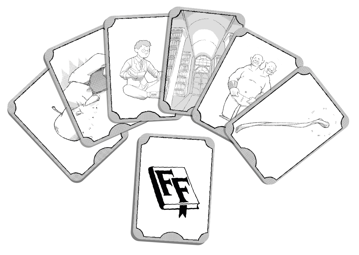 Além das cartas em preto e branco, há outros dois materiais físicos: o manual com as regras e as histórias e dois dados de seis lados – um branco, menor, e um dourado, maior. O objetivo dos dados é motivar as crianças a pensarem de maneira flexível. Se a ideia sugerida por elas atender o objetivo, elas ganham o direito de jogar o dado dourado. Se não, lançam o dado branco. Fábulas & Fantasias não abre espaço para o fracasso. Se a solução proposta não for flexível, o mestre vai usar um discurso de motivação para incentivar as crianças a “pensar fora da caixa” na tentativa seguinte.