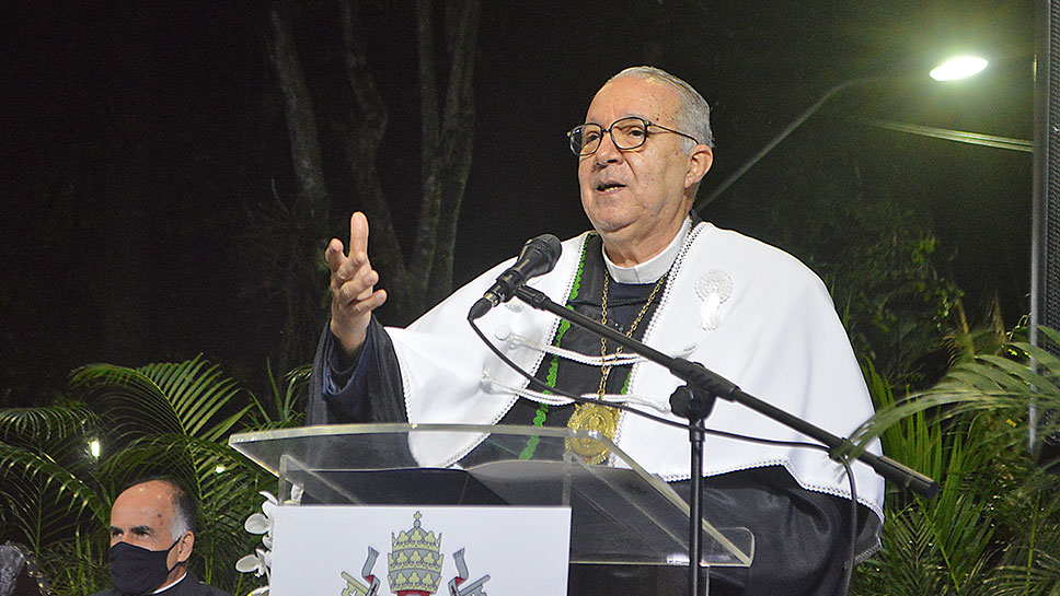 Para finalizar a posse, o Grão Chanceler, Dom Orani João Tempesta, relembrou do fim do padroado no Brasil. Segundo ele, há 130 anos a Igreja reorganizou toda a hierarquia eclesiástica no país, a começar pela criação da Arquidiocese do Rio de Janeiro. De acordo com o cardeal, estas transformações foram importantes para a criação das Faculdades Católicas, a gênese da PUC-Rio. Segundo o Arcebispo do Rio de Janeiro, o Cardeal Leme e padre Leonel Franca foram importantes para que a Igreja pudesse participar da parte acadêmica e intelectual. Dom Orani afirmou que a Universidade, além de ter uma longa história, tem uma grande importância na sociedade brasileira e internacional. Além disso, o Grão-Chanceler destacou a importância dos pilotis da PUC-Rio, que, segundo ele, é um lugar emblemático para a Universidade e para a posse do novo reitor. Ao fim, agradeceu ao padre Josafá por ter finalizado com excelência a sua missão como reitor e aconselhou padre Anderson conjugar tradição da Universidade com as novidades do presente.