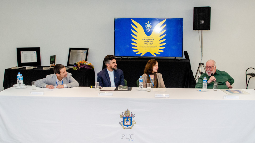 — Essa cerimônia homenageia não somente o professor Lucena, mas toda sua trajetória. A história recente da PUC-Rio se confunde com a história do professor Lucena. Como Reitor, e em nome de toda Universidade, quero exprimir minha alegria de participar desse momento. “Lucena” quer dizer pesquisa, busca, colocar as pessoas juntas e dinamizar. O título de professor emérito faz com que ele fique para sempre vinculado ao nome da Universidade. O emérito fica, nunca vai embora.