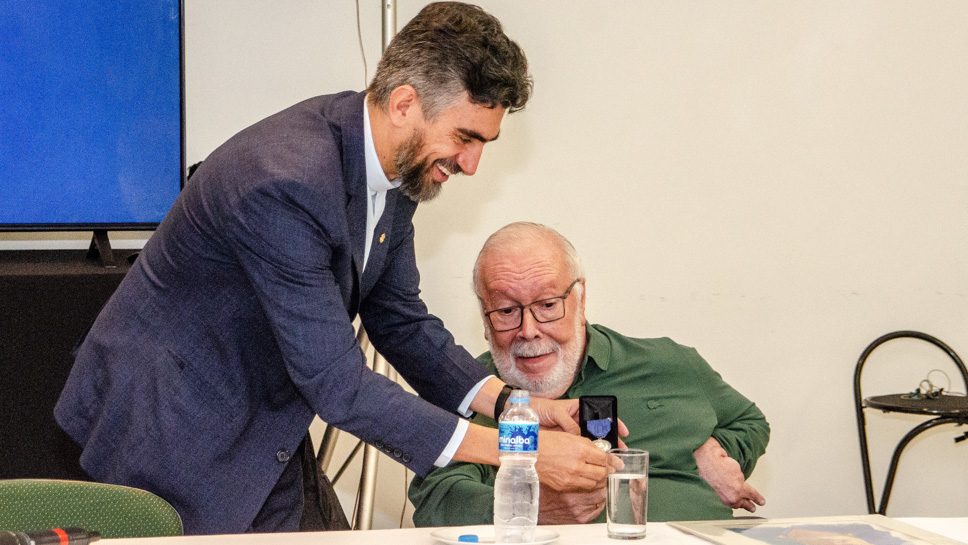 O ponto mais aguardado da cerimônia foi a entrega, pelas mãos do Reitor, da medalha Cardeal Dom Sebastião Leme e do diploma que concedeu o título de professor emérito da PUC-Rio. Para coroar o ato, também foi entregue um buquê de flores, que foi recebido pela esposa do homenageado, Marisa Lucena, parceira e apoiadora do trabalho do professor. A solenidade foi encerrada com a execução, com todos de pé, do Hino Pontifício pelo Coral da Universidade.