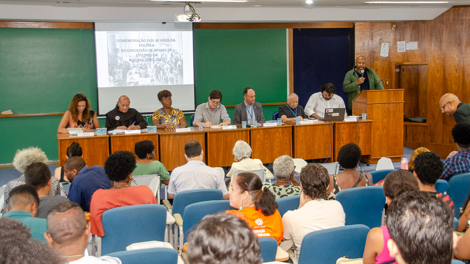 Três décadas de parceria de pré-vestibulares comunitários com a PUC-Rio foram comemoradas em uma cerimônia no dia 22 de novembro, no Auditório B6, com a entrega de Moções Honrosas e de Aplauso para ex-alunos bolsistas, lideranças e pré-vestibulares comunitários. Além disso, foi apresentada a publicação “Derrubando Barreiras: 30 anos da política de bolsas de estudo da PUC-Rio para estudantes da periferia (1993-2023)”, com a história e dados a respeito dos estudantes bolsistas da Universidade.