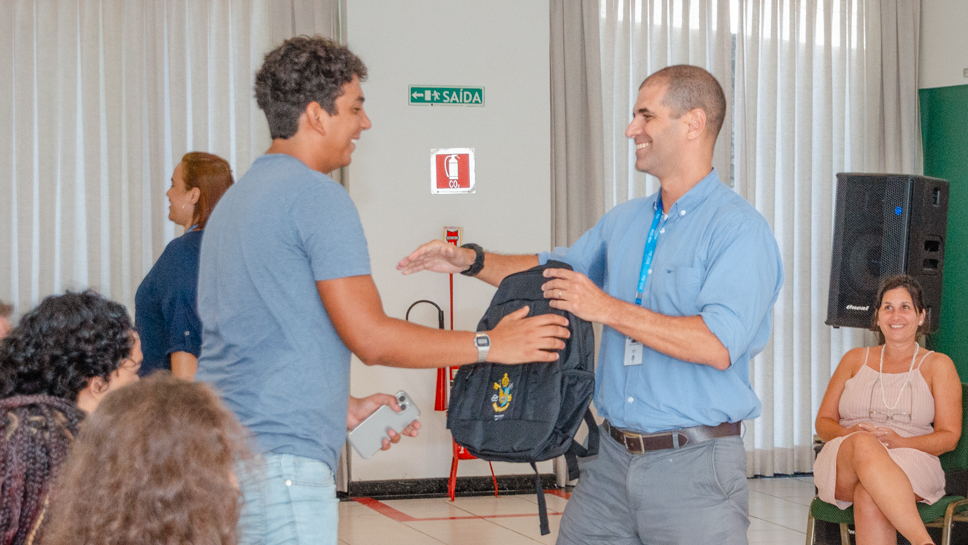 A recepção também contou com a participação do ex-aluno ProUni Felipe Drummond, que compartilhou dicas e histórias sobre os momentos mais marcantes da sua trajetória.