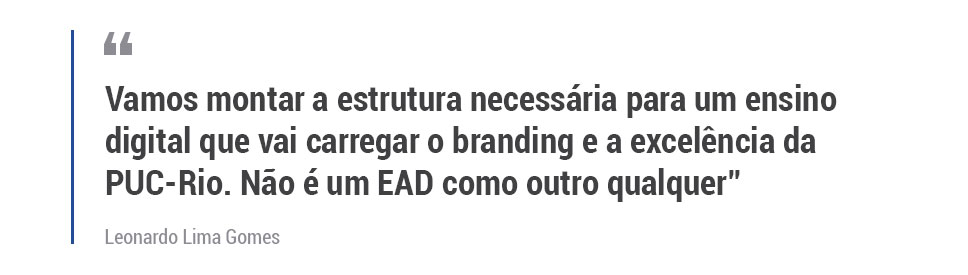 Na nova modelagem, a CCEAD passa a ser uma estrutura de produtividade digital em que, por meio de uma estratégia diferente, vamos criar conteúdos dentro da educação digital. E a CCEC, por sua vez, é uma grande estrutura de marketing digital, vendas e parcerias com estruturas e canais de distribuição. Vamos construir, neste ambiente, três estúdios: montar a estrutura necessária para um ensino digital que vai carregar o branding e a excelência da PUC-Rio. Não é um EAD como outro qualquer. É um ensino digital moderno, mais customizado às necessidades e às trilhas dos alunos.
