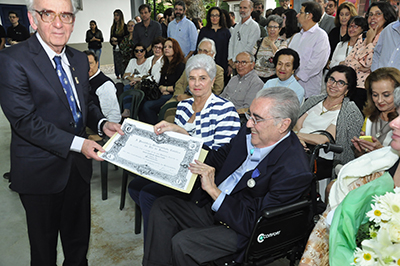 Padre Pedro entrega condecoração ao benfeitor Paulo Cunha