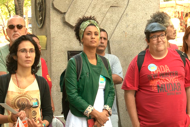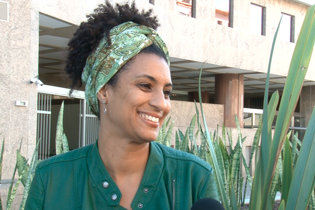 Adesivos e flyers do partido. O chão sujo do Centro do Rio, na Praça Mario Lago. De pé numa caixa de madeira, não maior do que um banquinho, falava uma mulher de voz forte. Negra, carismática, gritava com orgulho uma frase de efeito que arrancava aplausos da plateia: “Lugar de mulher é onde ela quiser”. Trazia o discurso do partido de promover uma nova política, dar um novo olhar ao que estava velho, ao que já provoca impaciência em alguns eleitores há décadas. Era Marielle Franco, 36 anos, recém-eleita vereadora pelo Psol, eleita com 46.502 votos, sendo a quinta mais votada na cidade.
