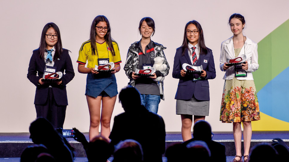 Criado para incentivar a participação de meninas nas Olimpíadas de Matemática, o prêmio IMPA Meninas Olímpicas 2017 foi dado pelo Instituto de Matemática Pura e Aplicada (IMPA) para a melhor competidora da IMO de cada continente. A colombiana Carolina Ortega, uma das vencedoras do prêmio e aluna do Massachusetts Institute of Technology (MIT), reconhece que o número de mulheres em competições é pequeno e desproporcional. Ela acredita que é um processo lento, mas tem esperanças de que, no futuro, mais mulheres participem das competições.
