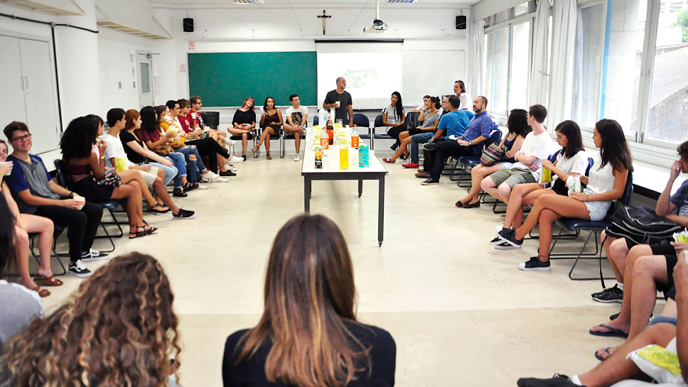A Coordenação do Departamento de Direito recebeu os alunos com bom humor e descontração ressaltando a característica interdisciplinar do curso. O calouro Thomaz Aquino, 19 anos, contou que trocou a Engenharia Química na UFRJ pelo Direito na PUC.